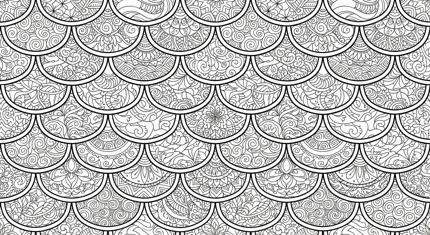 Ein sich wiederholendes Muster aus ineinandergreifenden Drachenschuppen, jede Sc... ist ein Ausmalbild aus der Kategorie Drachen. Kostenlos als PDF herunterladen oder direkt ausdrucken. Perfekt für Kinder, die gerne malen und kreativ sind.