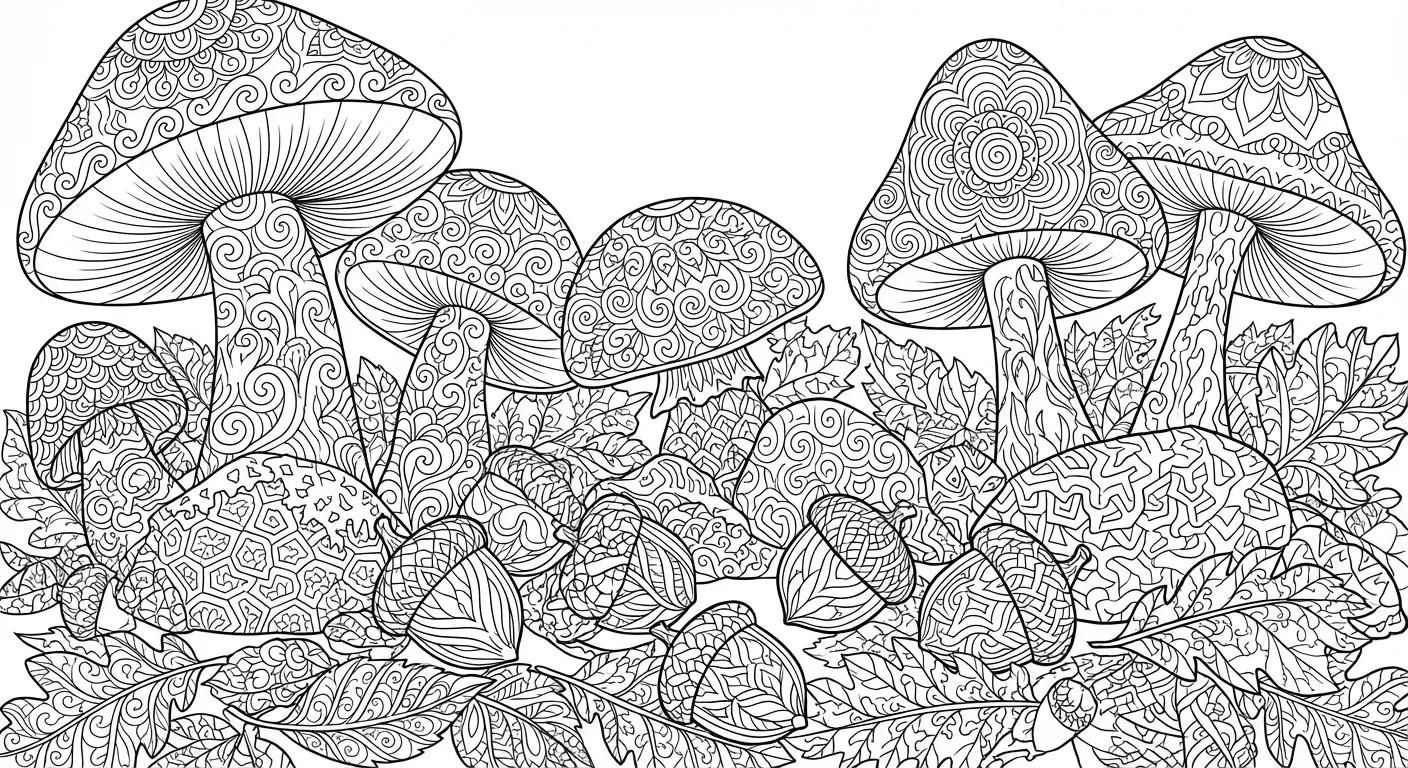 Eine sehr detaillierte Waldbodenszene mit gemusterten Pilzen, moosbedeckten Stei... ist ein Ausmalbild aus der Kategorie Herbst. Kostenlos als PDF herunterladen oder direkt ausdrucken. Perfekt für Kinder, die gerne malen und kreativ sind.