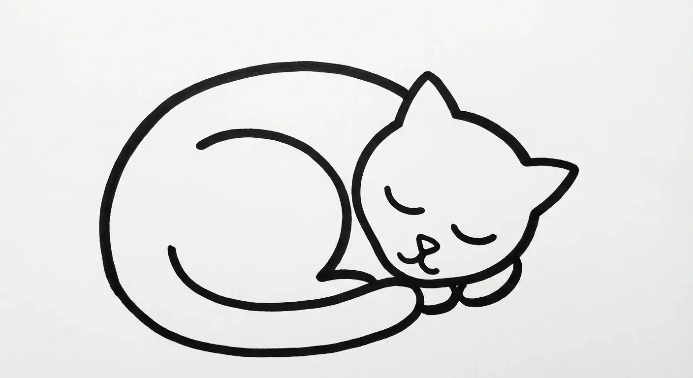 Schlafmütze: Simples Bild einer schlafenden Katze, eingerollt zu einem Ball – en... ist ein Ausmalbild aus der Kategorie Katzen. Kostenlos als PDF herunterladen oder direkt ausdrucken. Perfekt für Kinder, die gerne malen und kreativ sind.