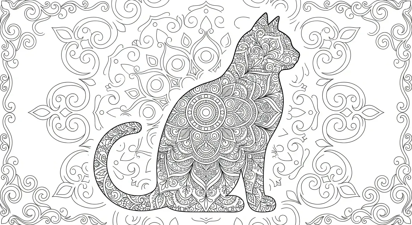Mandala-Silhouette: Die Form einer Katze, komplett gefüllt mit symmetrischen Blü... ist ein Ausmalbild aus der Kategorie Katzen. Kostenlos als PDF herunterladen oder direkt ausdrucken. Perfekt für Kinder, die gerne malen und kreativ sind.