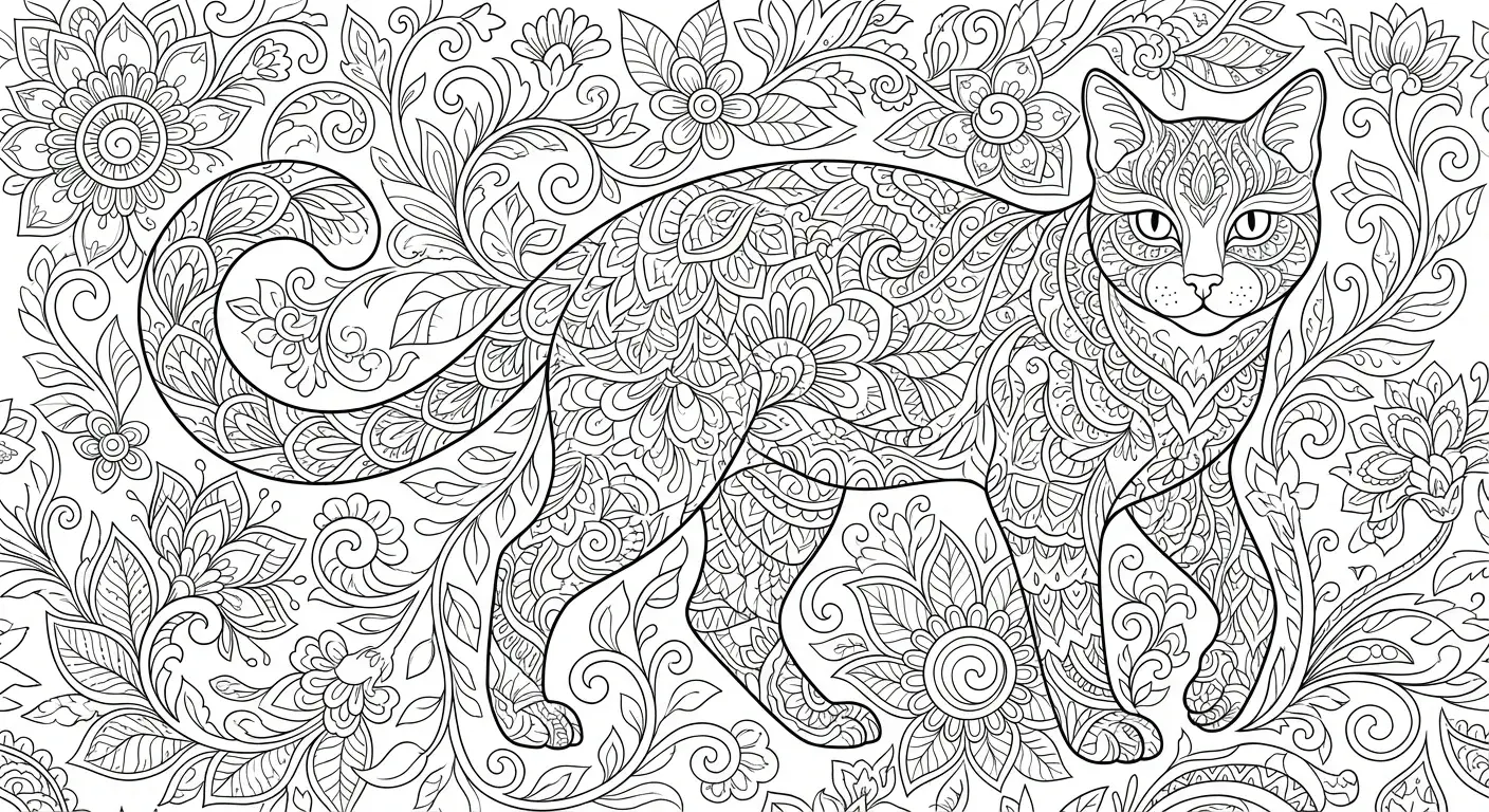 Versteckt im Dschungel: Eine Katze, die fast unsichtbar mit den komplexen Blätte... ist ein Ausmalbild aus der Kategorie Katzen. Kostenlos als PDF herunterladen oder direkt ausdrucken. Perfekt für Kinder, die gerne malen und kreativ sind.