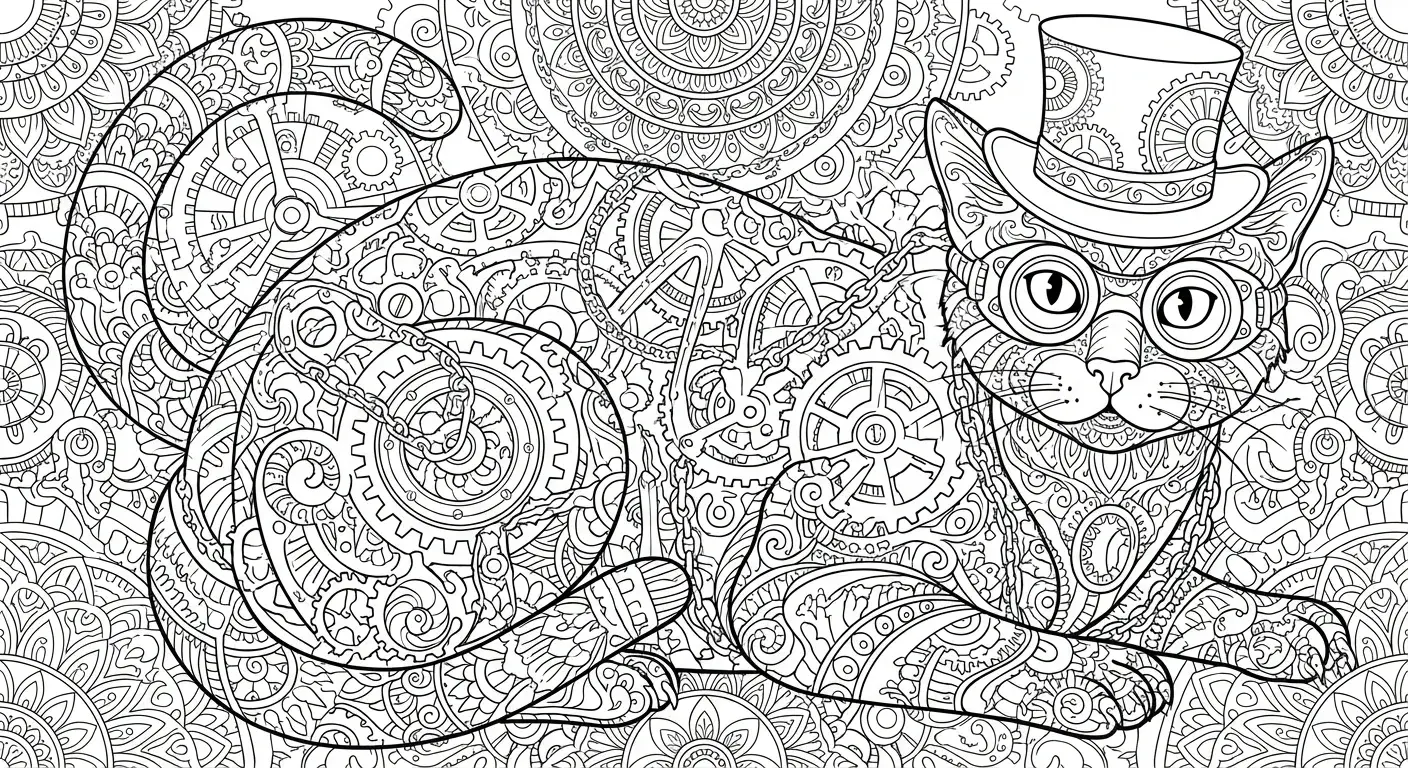 Steampunk-Kater: Eine mechanische Katze mit Zahnrädern, Uhrwerken und Dampfmasch... ist ein Ausmalbild aus der Kategorie Katzen. Kostenlos als PDF herunterladen oder direkt ausdrucken. Perfekt für Kinder, die gerne malen und kreativ sind.