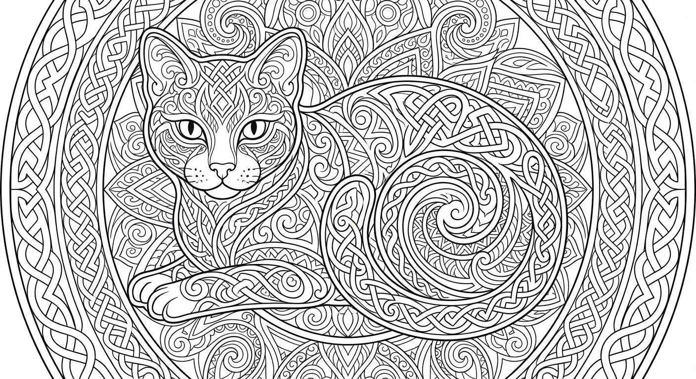 Keltischer Knoten: Eine Katze, deren Körper aus einem einzigen, endlosen Band ge... ist ein Ausmalbild aus der Kategorie Katzen. Kostenlos als PDF herunterladen oder direkt ausdrucken. Perfekt für Kinder, die gerne malen und kreativ sind.
