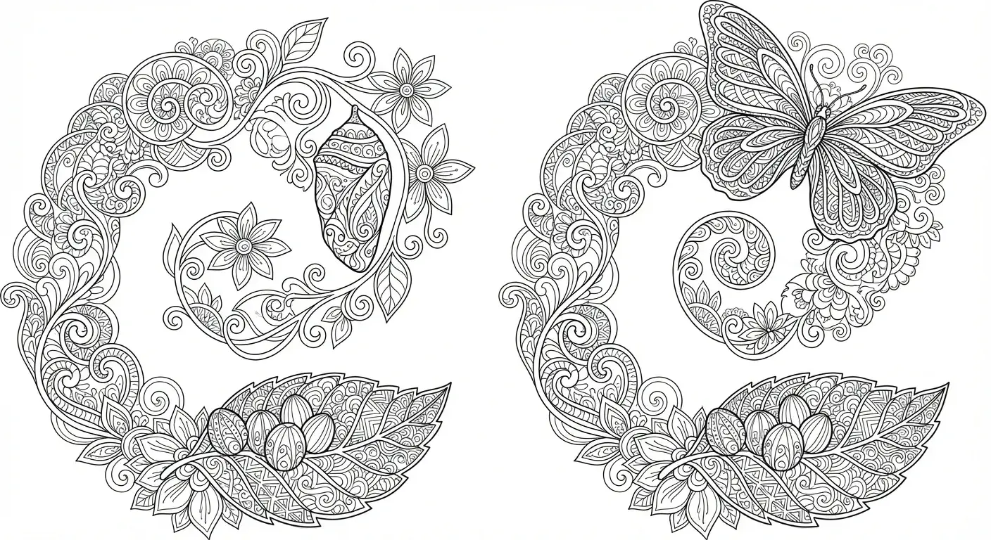 Eine komplexe, fließende Spiralenkomposition, die den Lebenszyklus des Schmetter... ist ein Ausmalbild aus der Kategorie Schmetterlinge. Kostenlos als PDF herunterladen oder direkt ausdrucken. Perfekt für Kinder, die gerne malen und kreativ sind.