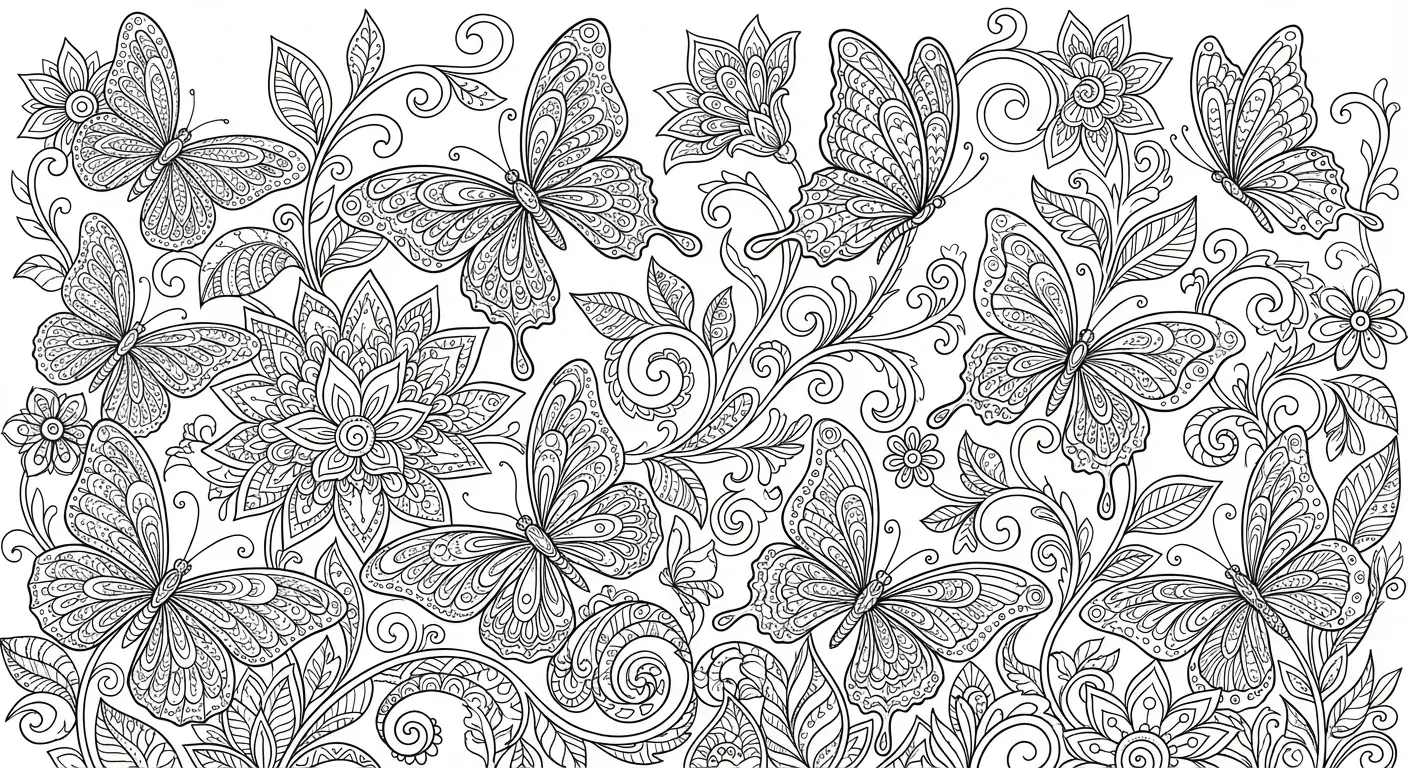 Eine dichte, fantastische Gartenszene mit mehreren hochdetaillierten Schmetterli... ist ein Ausmalbild aus der Kategorie Schmetterlinge. Kostenlos als PDF herunterladen oder direkt ausdrucken. Perfekt für Kinder, die gerne malen und kreativ sind.