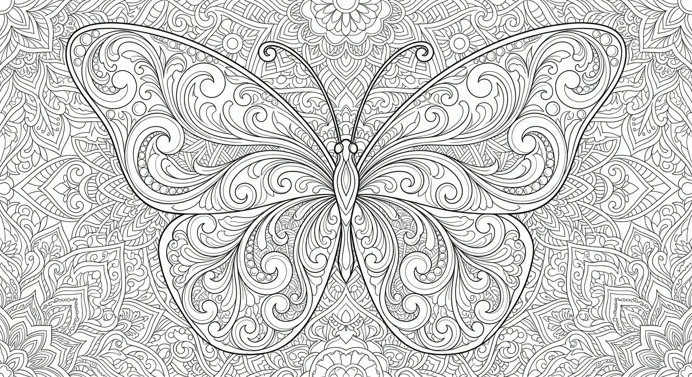 Ein Schmetterling, dessen Flügel aufwendig mit barock inspirierten Schnörkeln, r... ist ein Ausmalbild aus der Kategorie Schmetterlinge. Kostenlos als PDF herunterladen oder direkt ausdrucken. Perfekt für Kinder, die gerne malen und kreativ sind.