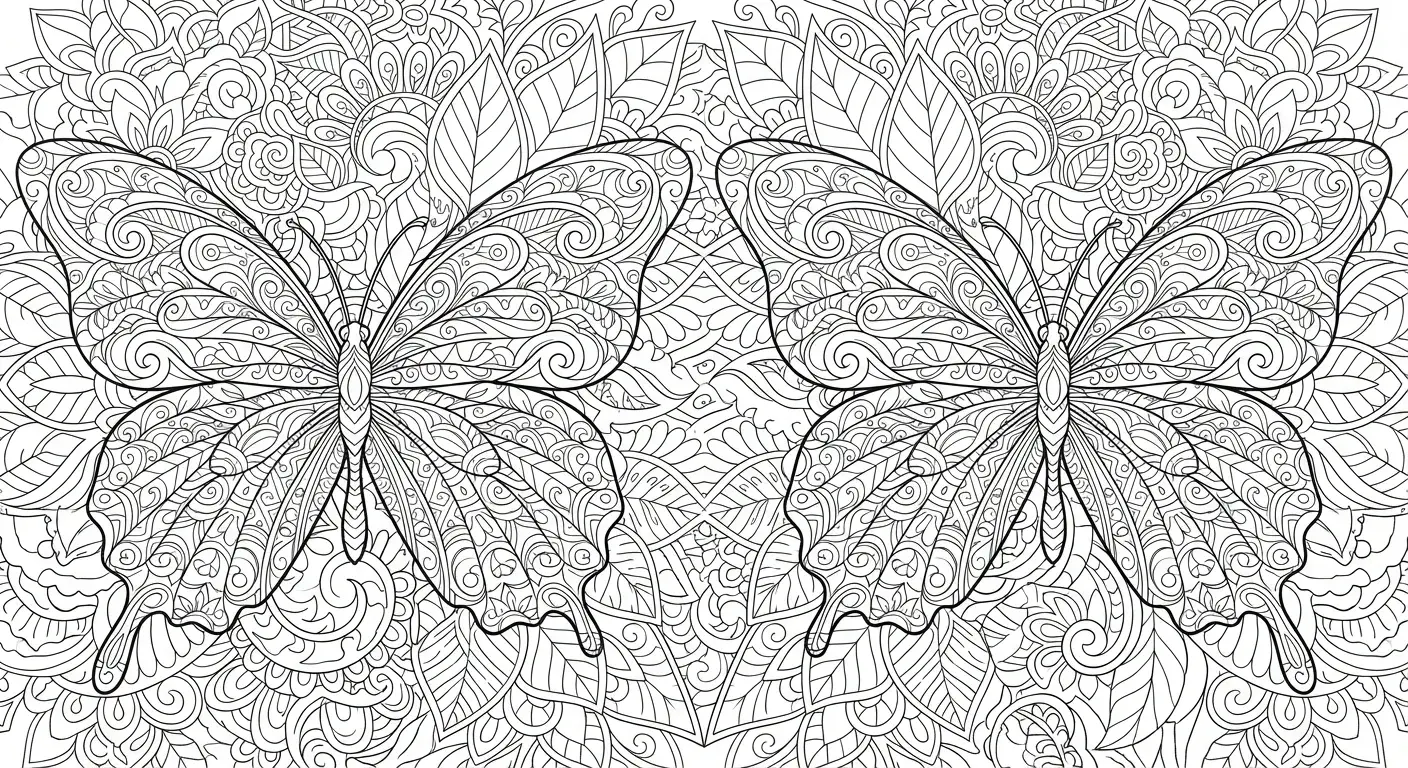Ein Paar perfekt symmetrischer Schmetterlinge, die einen eleganten, gespiegelten... ist ein Ausmalbild aus der Kategorie Schmetterlinge. Kostenlos als PDF herunterladen oder direkt ausdrucken. Perfekt für Kinder, die gerne malen und kreativ sind.