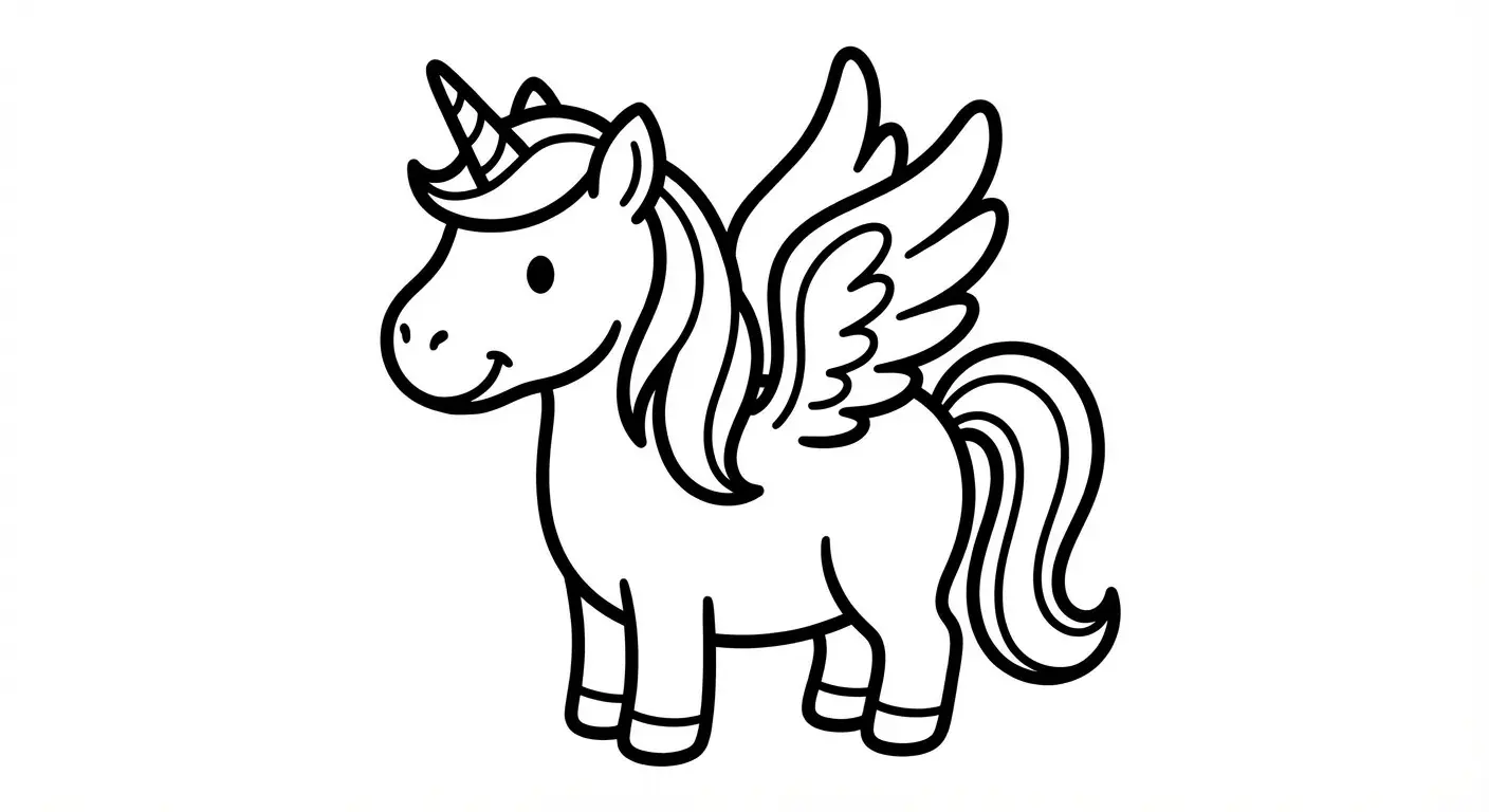 Einhorn mit Flügeln in einfacher Darstellung – so können auch die Kleinsten scho...