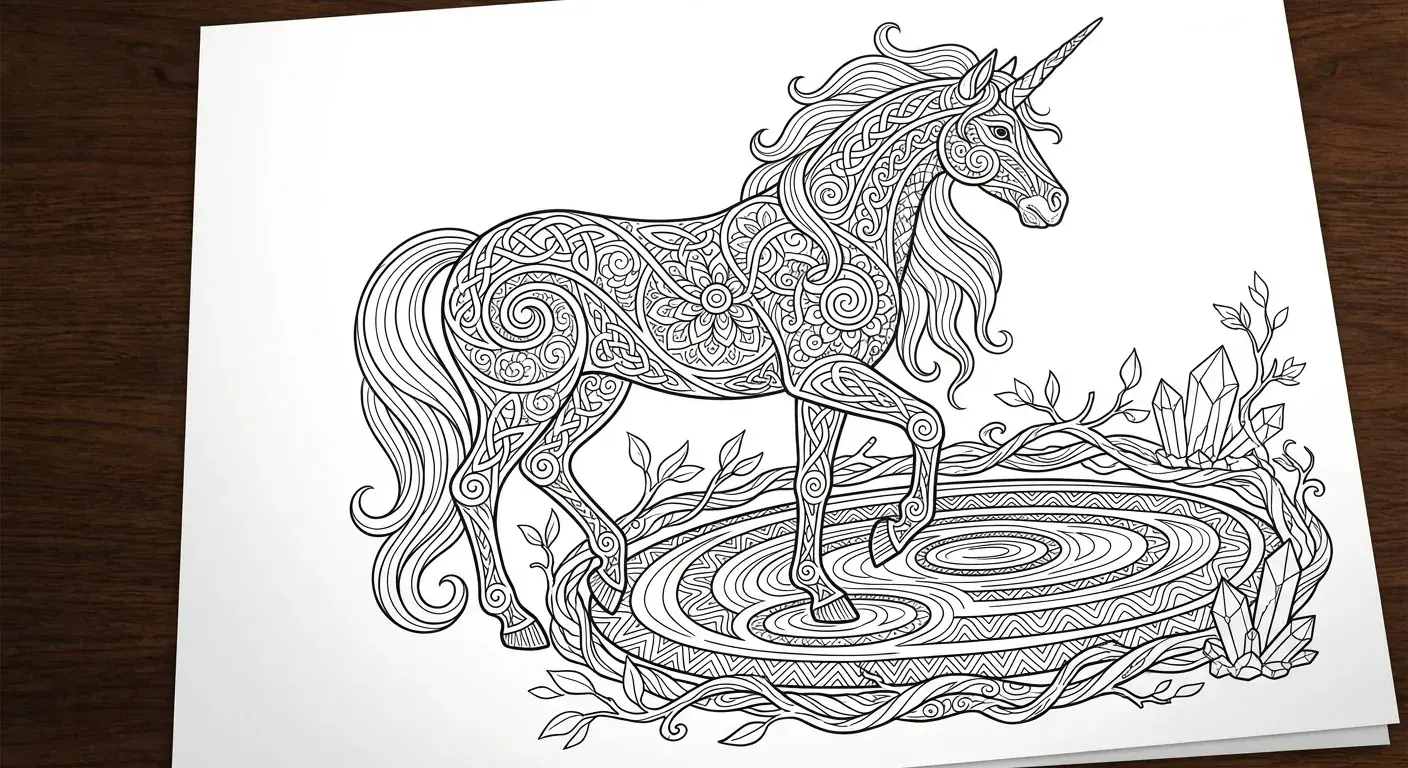 Keltische Mystik: Ein uraltes Wächter-Einhorn, dessen Körper von einem endlosen ... ist ein Ausmalbild aus der Kategorie Einhorn. Kostenlos als PDF herunterladen oder direkt ausdrucken. Perfekt für Kinder, die gerne malen und kreativ sind.