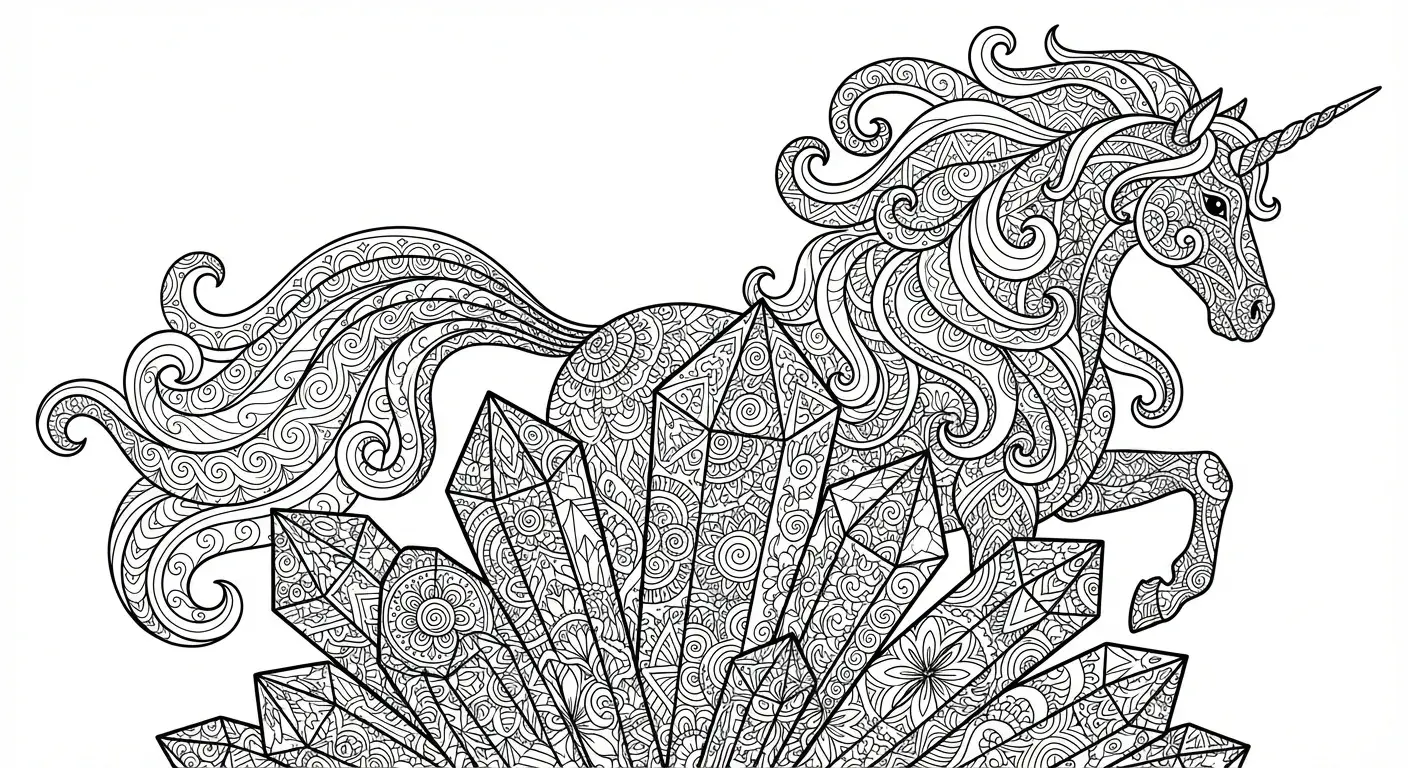 Kristallklar: Ein Einhorn aus facettierten Kristallformen, die das Licht brechen... ist ein Ausmalbild aus der Kategorie Einhorn. Kostenlos als PDF herunterladen oder direkt ausdrucken. Perfekt für Kinder, die gerne malen und kreativ sind.