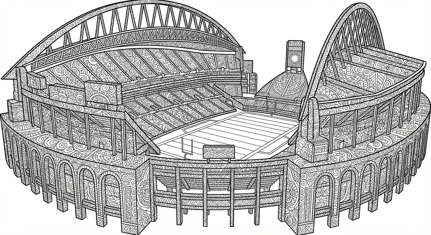 Eine hochdetaillierte, architektonische Darstellung eines großen Fußballstadions... ist ein Ausmalbild aus der Kategorie Fußball. Kostenlos als PDF herunterladen oder direkt ausdrucken. Perfekt für Kinder, die gerne malen und kreativ sind.