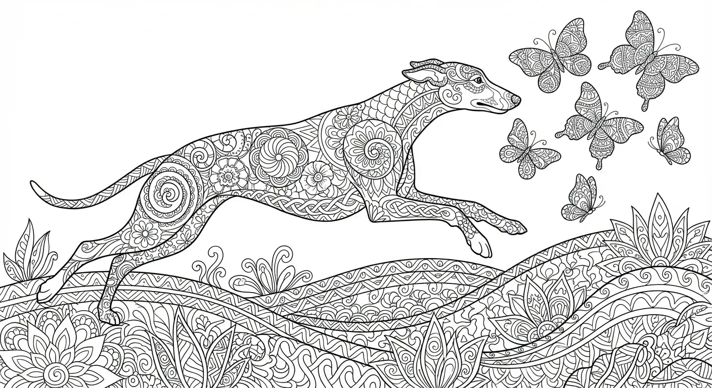 Eine dynamische Szene eines stilisierten Hundes im Sprung, der abstrakten, gemus... ist ein Ausmalbild aus der Kategorie Hunde. Kostenlos als PDF herunterladen oder direkt ausdrucken. Perfekt für Kinder, die gerne malen und kreativ sind.