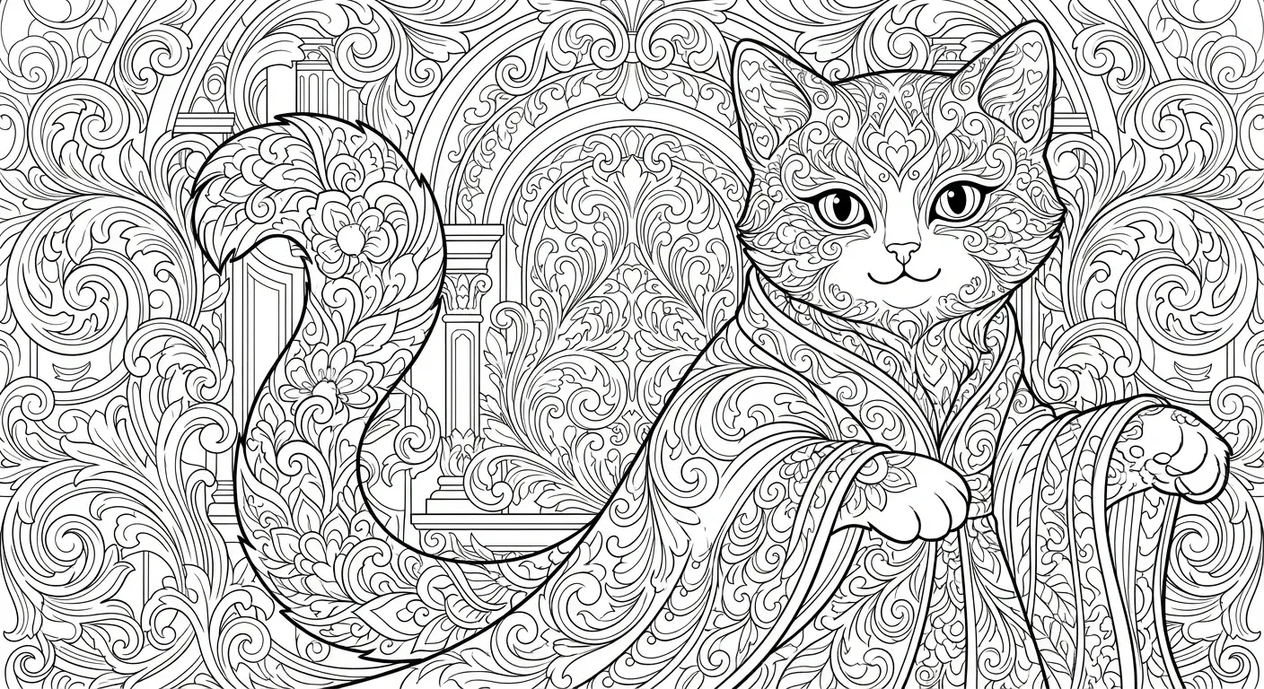 Eine majestätische, anthropomorphe Kawaii-Katze, geschmückt mit aufwendigen flor... ist ein Ausmalbild aus der Kategorie Kawaii. Kostenlos als PDF herunterladen oder direkt ausdrucken. Perfekt für Kinder, die gerne malen und kreativ sind.