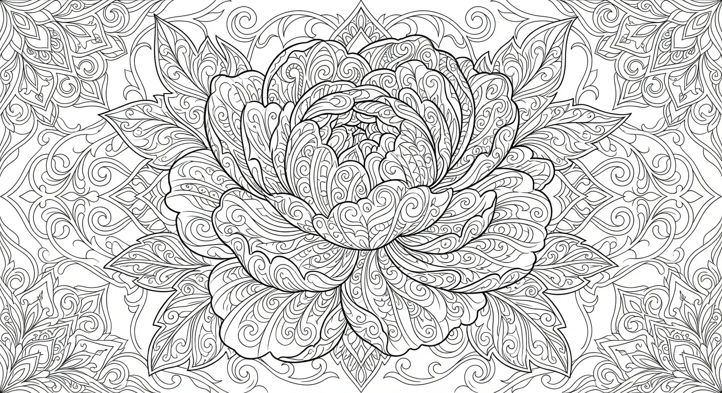 Eine große, mehrschichtige Pfingstrosenblüte, bei der jedes einzelne Blütenblatt... ist ein Ausmalbild aus der Kategorie Blumen. Kostenlos als PDF herunterladen oder direkt ausdrucken. Perfekt für Kinder, die gerne malen und kreativ sind.