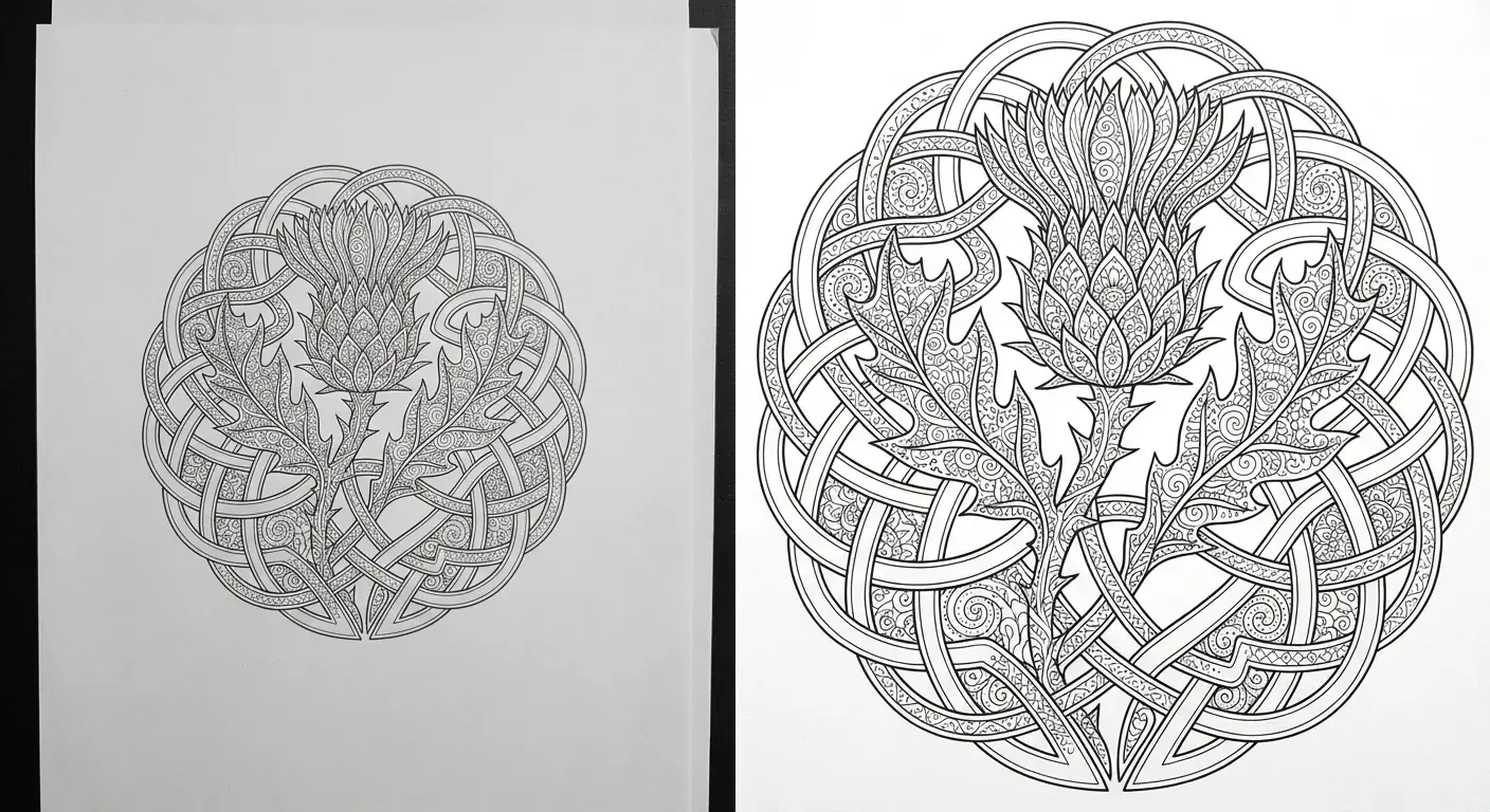 Eine detaillierte Distelpflanze, deren stachelige Blätter und Blüte in ein dicht... ist ein Ausmalbild aus der Kategorie Blumen. Kostenlos als PDF herunterladen oder direkt ausdrucken. Perfekt für Kinder, die gerne malen und kreativ sind.