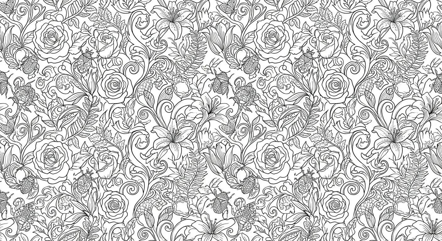 Ein sich wiederholendes, dichtes viktorianisches Blumen-Tapetenmuster, das eine ... ist ein Ausmalbild aus der Kategorie Blumen. Kostenlos als PDF herunterladen oder direkt ausdrucken. Perfekt für Kinder, die gerne malen und kreativ sind.