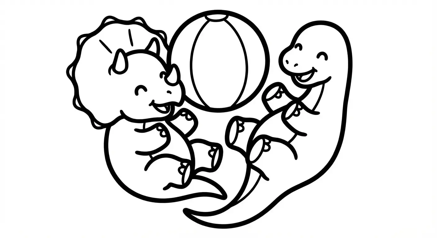 Zwei Baby-Dinosaurier spielen ist ein Ausmalbild aus der Kategorie Dinosaurier. Kostenlos als PDF herunterladen oder direkt ausdrucken. Perfekt für Kinder, die gerne malen und kreativ sind.