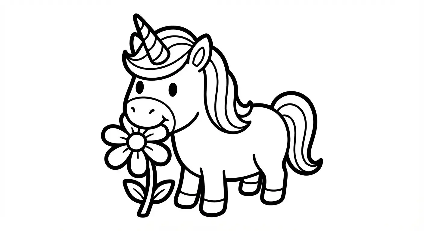 Ein Einhorn, das eine Blume frisst ist ein Ausmalbild aus der Kategorie Einhorn & Pegasus. Kostenlos als PDF herunterladen oder direkt ausdrucken. Perfekt für Kinder, die gerne malen und kreativ sind.