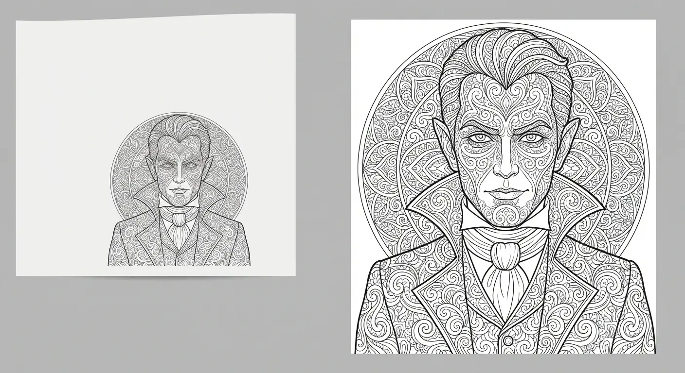Ein detailliertes Porträt eines Vampirs in einem aufwendigen, viktorianischen Ou... ist ein Ausmalbild aus der Kategorie Halloween. Kostenlos als PDF herunterladen oder direkt ausdrucken. Perfekt für Kinder, die gerne malen und kreativ sind.