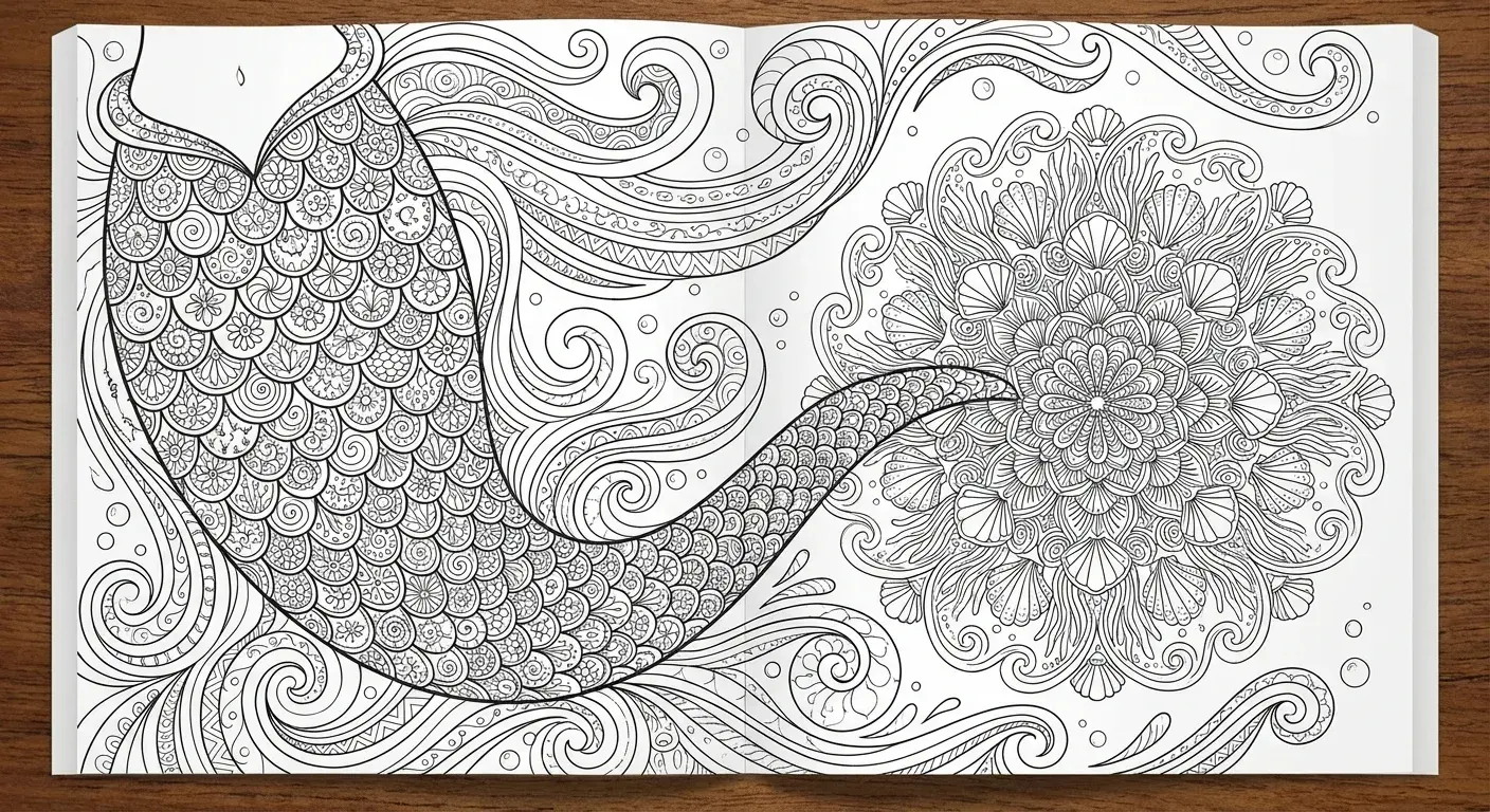 Ein hochdetaillierter Meerjungfrauenschwanz, wobei jede Schuppe einzigartige, za... ist ein Ausmalbild aus der Kategorie Meerjungfrau. Kostenlos als PDF herunterladen oder direkt ausdrucken. Perfekt für Kinder, die gerne malen und kreativ sind.