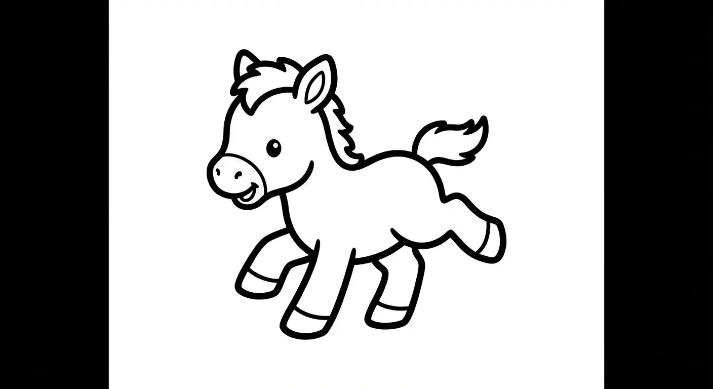 Süßes Fohlen: Ein wackeliges kleines Pferdchen macht seine ersten Schritte – nie... ist ein Ausmalbild aus der Kategorie Pferde. Kostenlos als PDF herunterladen oder direkt ausdrucken. Perfekt für Kinder, die gerne malen und kreativ sind.