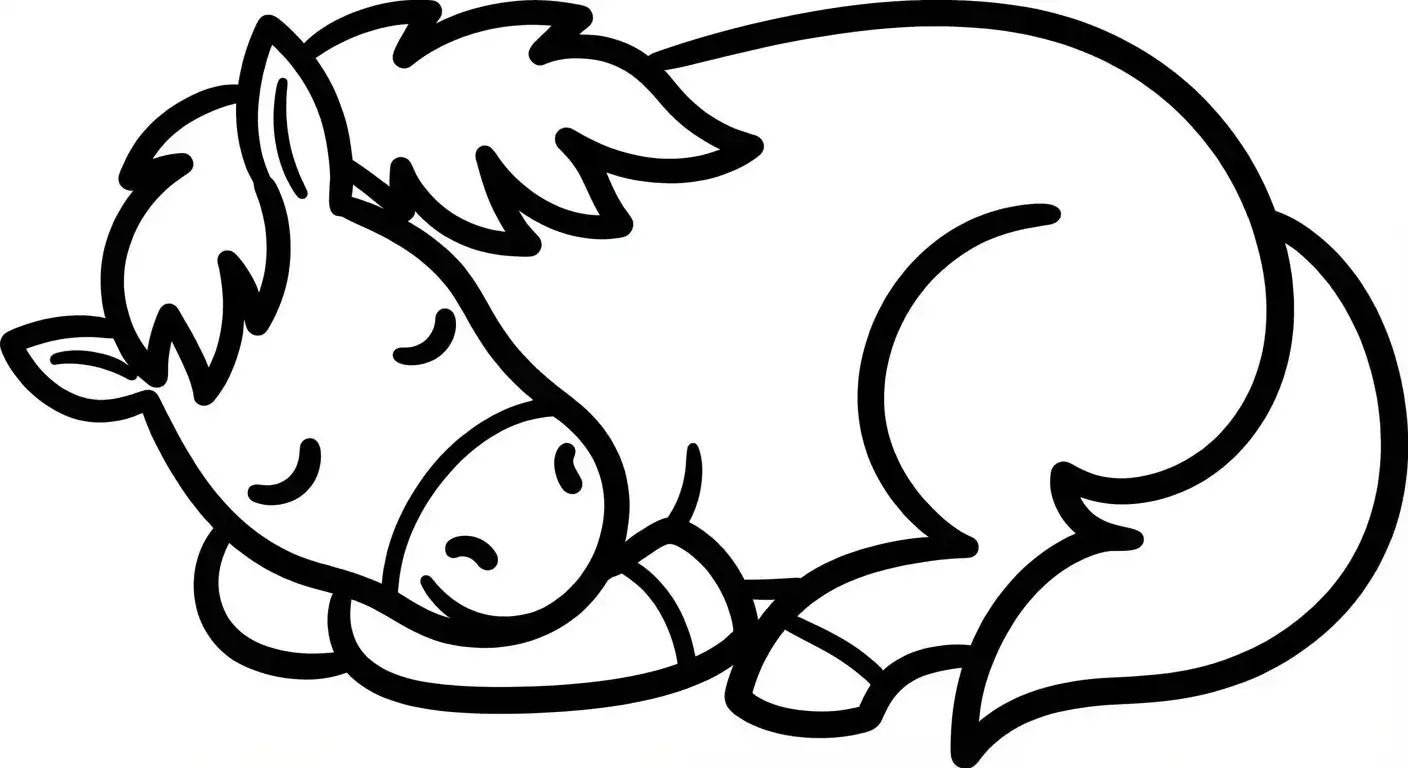 Gute Nacht: Ein schlafendes Pferd, eingekuschelt im Stroh – einfaches Motiv zum ... ist ein Ausmalbild aus der Kategorie Pferde. Kostenlos als PDF herunterladen oder direkt ausdrucken. Perfekt für Kinder, die gerne malen und kreativ sind.