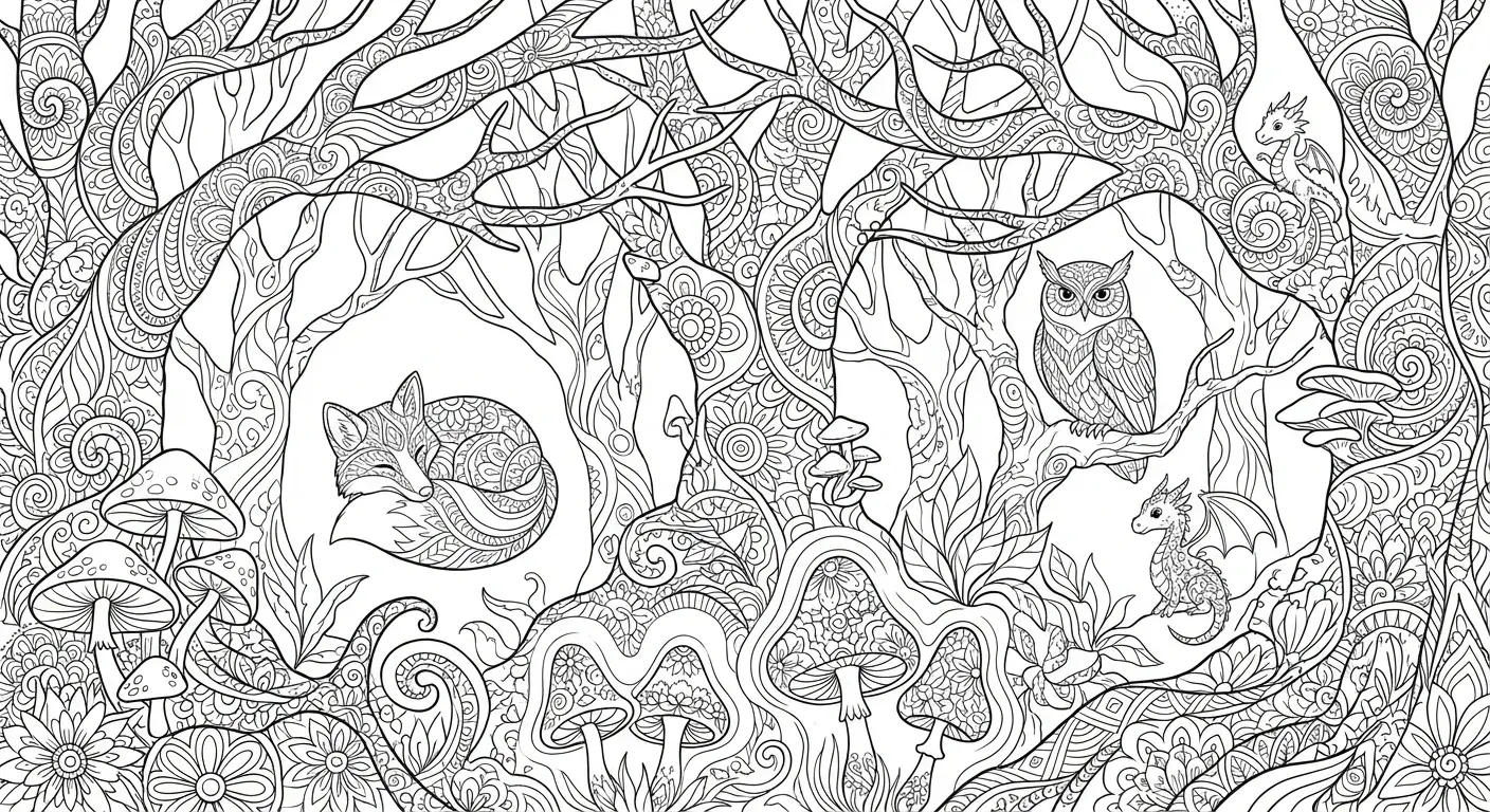Eine mystische verzauberte Waldszene mit ineinander verschlungenen Ästen, leucht... ist ein Ausmalbild aus der Kategorie Prinzessin. Kostenlos als PDF herunterladen oder direkt ausdrucken. Perfekt für Kinder, die gerne malen und kreativ sind.
